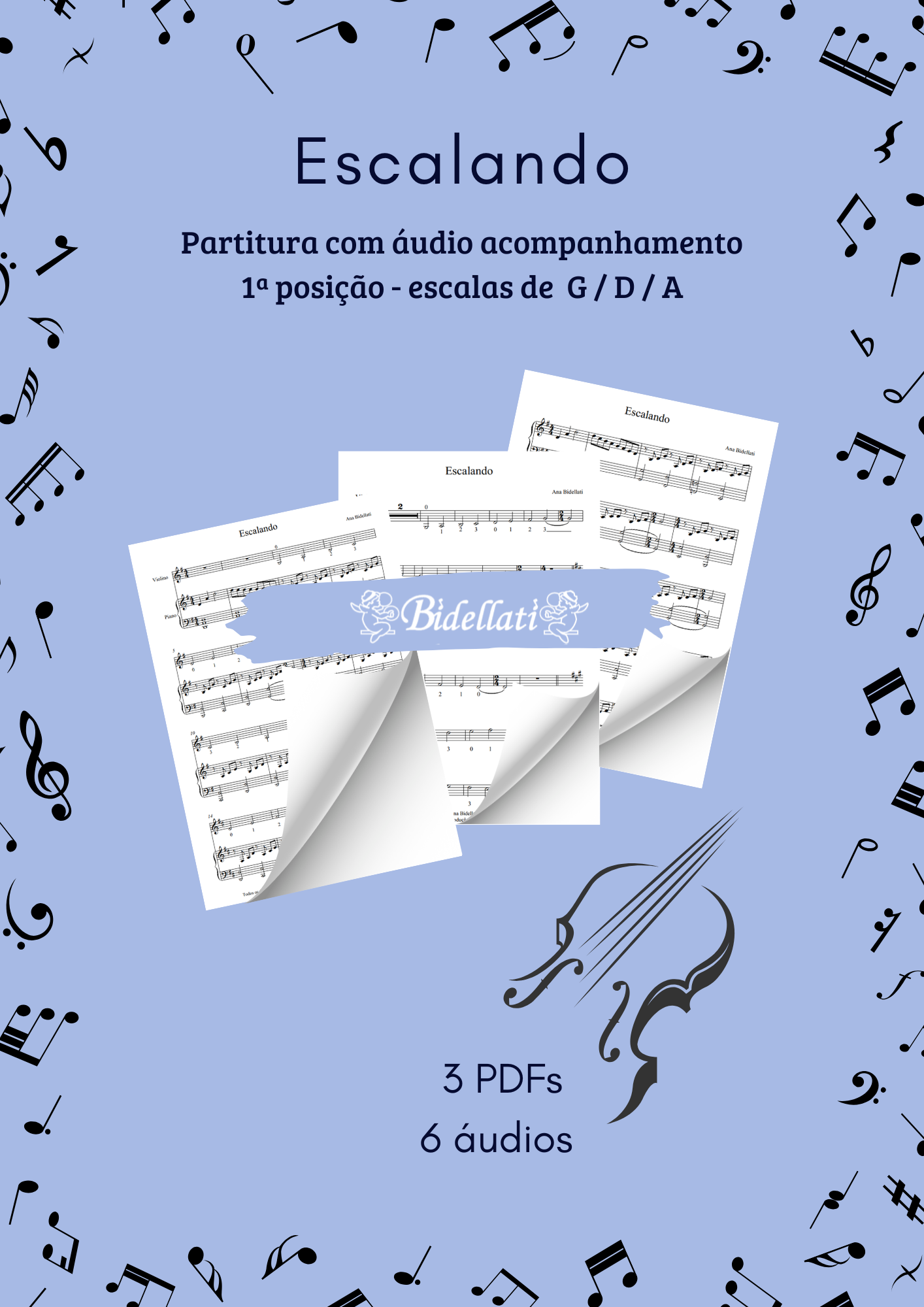 3 áudios com violino junto para apoio